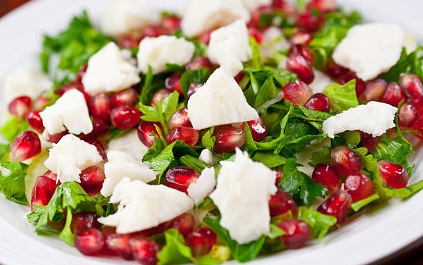 💡 TIP: 석류의 루비빛 색감이 샐러드를 화려하게 만들어줘요. 새콤한 석류 알맹이가 치즈의 고소함과 잘 어울려 풍미를 한층 높여준답니다.